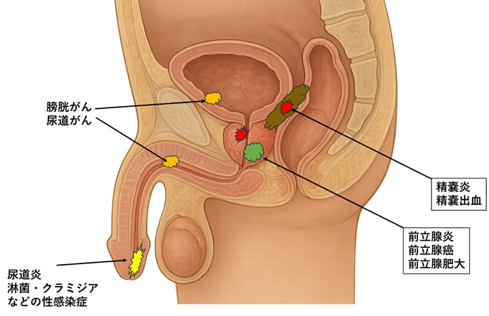 - 前立腺癌や性感染症のサインの可能性もあります。